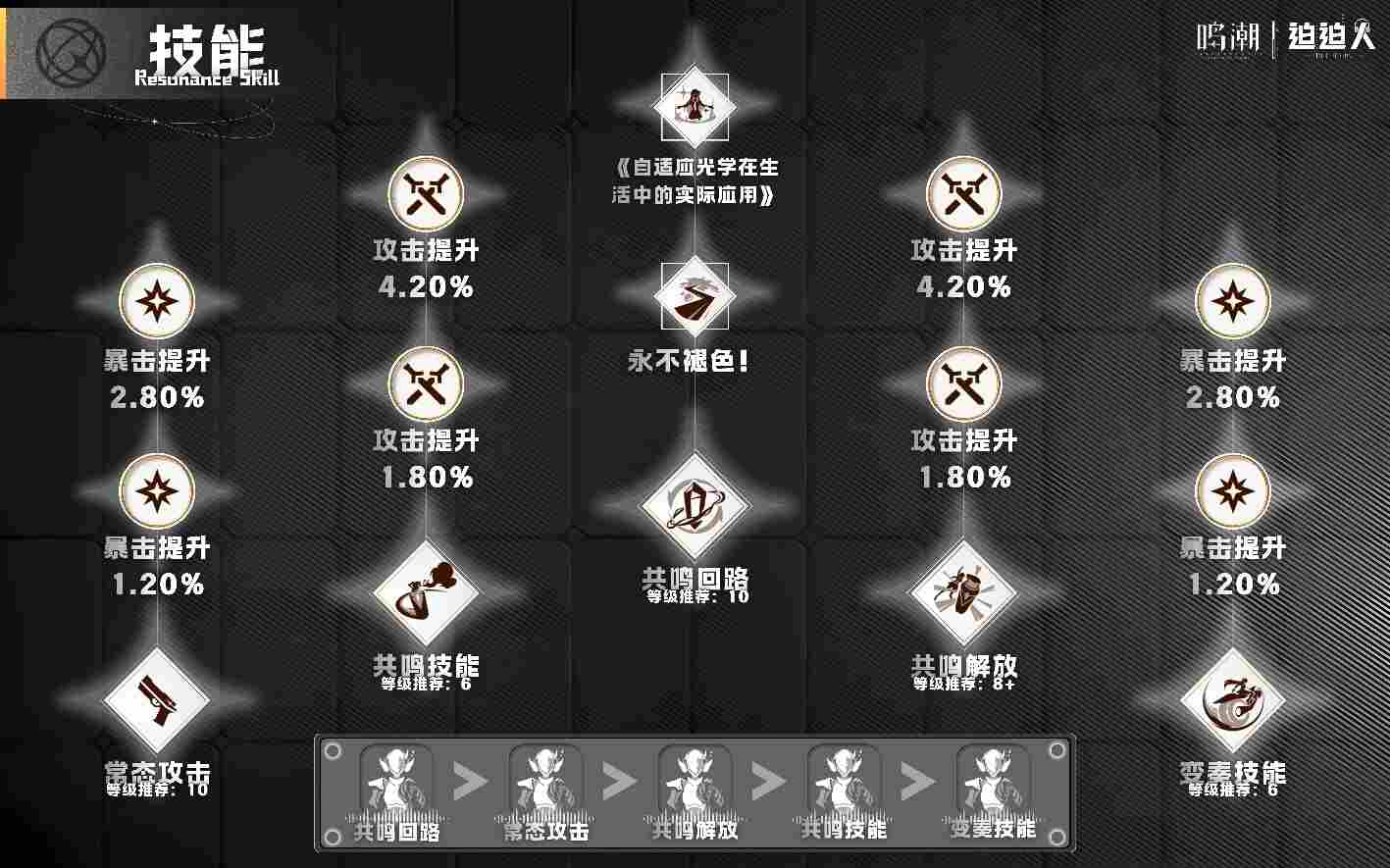 ■加点优先级推荐共鸣回路>常态攻击>共鸣解放>共鸣技能>变奏技能