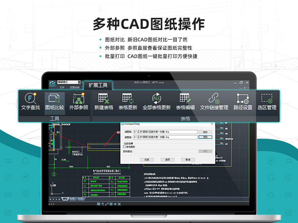 可实现CAD快速看图、PDF转CAD图纸,DWG图纸编辑、DWG批注、DWG测量标注、CAD测量、CAD文字查找、导出PDF/JPG、CAD图纸比较、CAD图层管理、Excel表格等功能,无水印打印、随时共享设计进度,无需发送DWG图纸,可分享链接给他人查看,不担心图纸安全和侵权。提供CAD测量工具,适用于工程建筑、施工、现场勘测、家居装饰装修、机械制图、测量、测绘等行业;全面兼容天正各版本,天正专业图纸显示更完整、更精准,助力CAD自学、工地建筑建设、工程测量员、设计师画图绘图等。